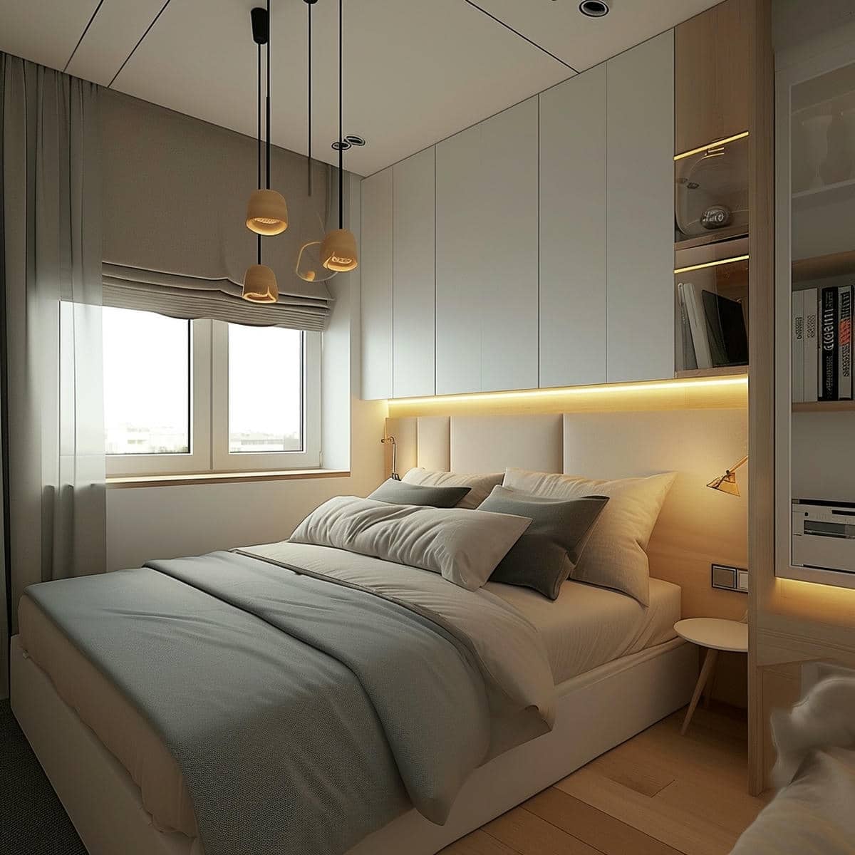 Pour optimiser l’espace dans une petite chambre, pensez ร utiliser des sommiers avec des rangements intรฉgrรฉs. Des tiroirs sous le sommier ou des tรชtes de lit avec des รฉtagรจres peuvent vous offrir un espace supplรฉmentaire sans encombrer la piรจce.